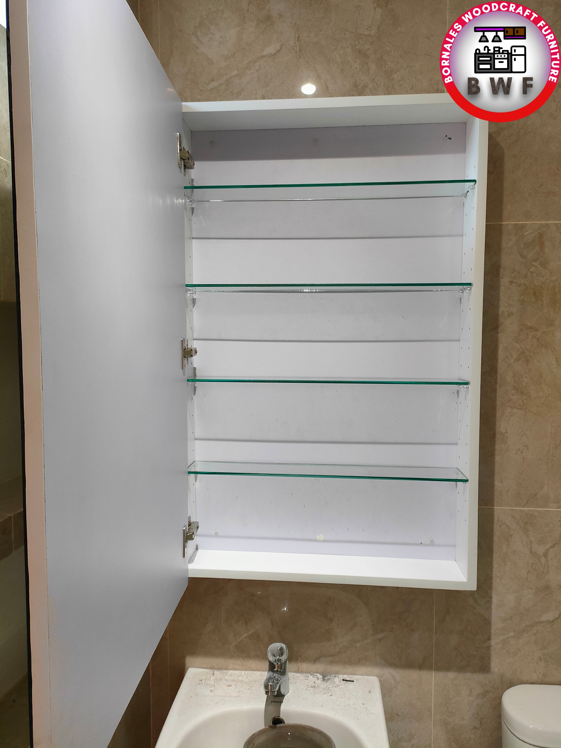 Crafted with high-quality 3/4 machine press marine laminated plywood that is termite and water resistant, this cabinet is built to last. The soft-close hinges ensure smooth and quiet operation, while the 1/4 clear glass shelves provide additional storage space that can be adjusted to fit your needs. The mirror allows you to see yourself clearly, even in the steamiest of bathrooms.