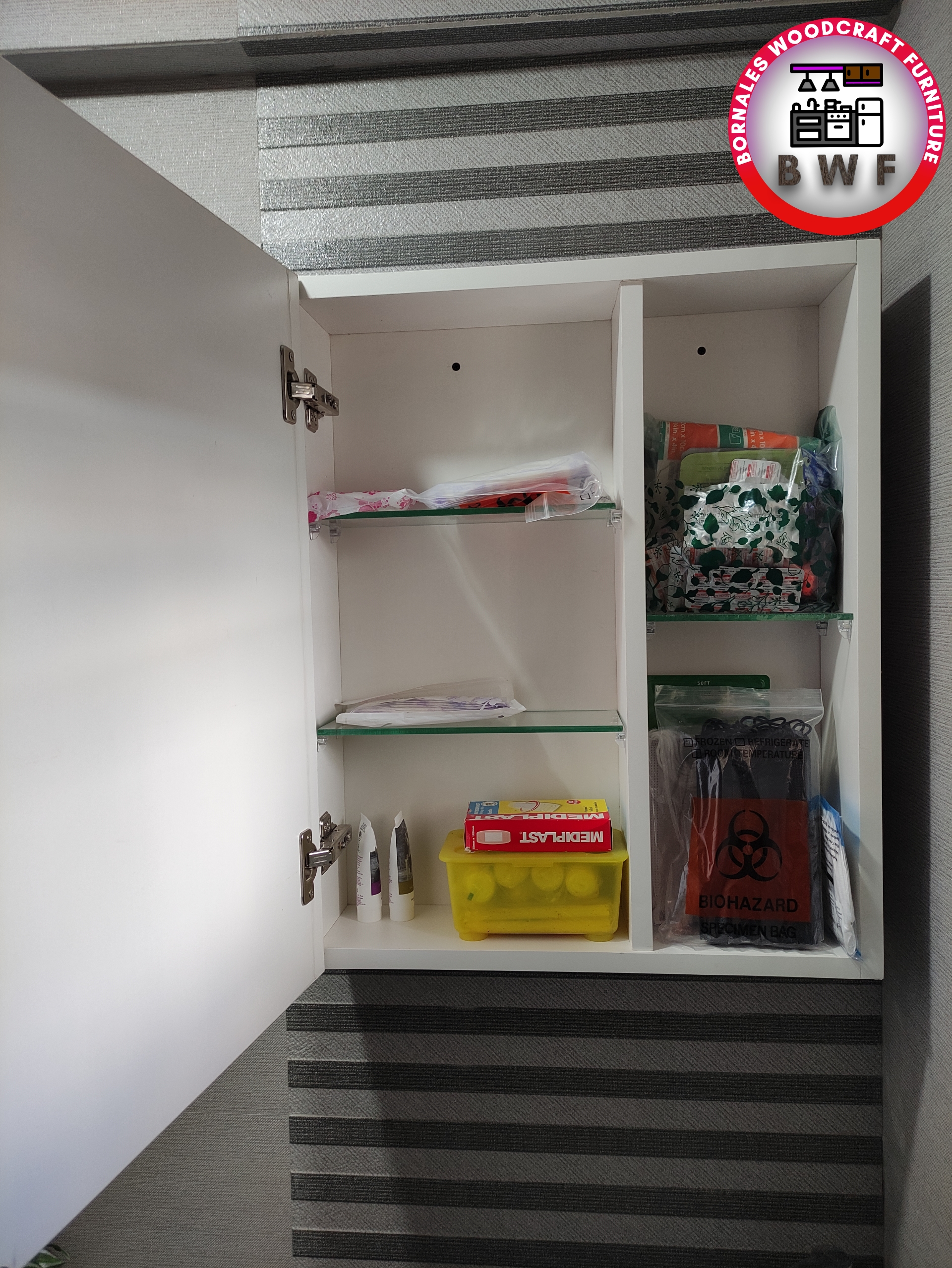 | shelves | wood, glass |